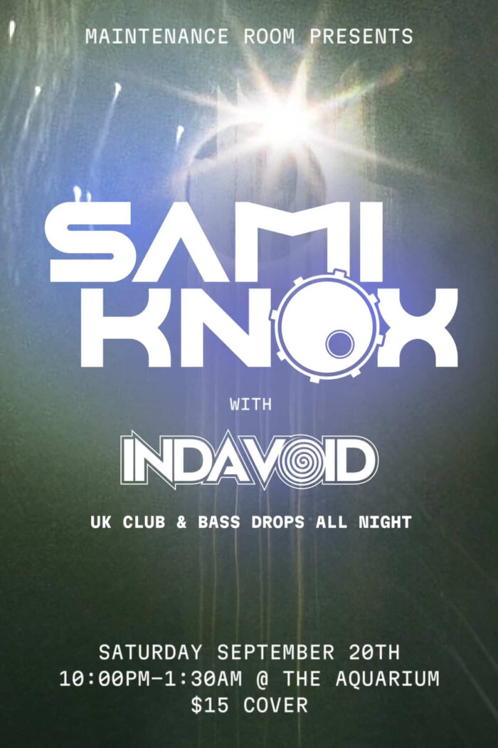 Maintenance Room hosts a pop up at The Aquarium this Saturday featuring local IndaVoid and Twin Cities UK Bass Allstar Sami Knox.